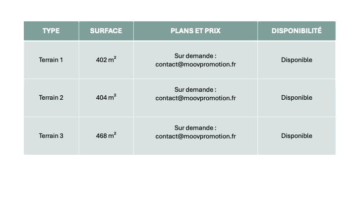 - ✅ Viabilisation complète (prêts à construire).